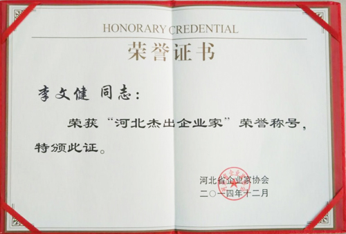 集團(tuán)公司名譽(yù)董事長(zhǎng)李文健榮獲“河北杰出企業(yè)家”稱號(hào)
