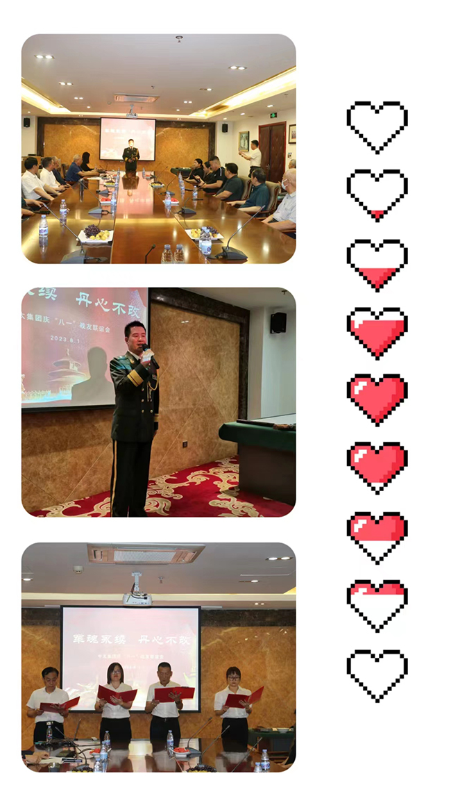 集團領導代表集團公司向在座的各位老首長、老戰友,以及集團公司未參加今天活動的全體老戰友致以誠摯的問候和節日的美好祝福!集團領導指出,召開戰友聯誼座談會,是中太集體轉業以來一直延續到現在的最盛大的活動之一,既是為了紀念建軍這個光輝節日,也是借此機會與老戰友們見見面、敘敘舊。