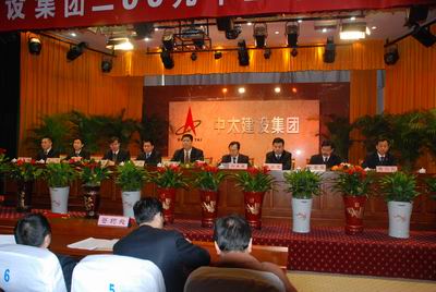在《步步高》的樂曲聲中,來自中太建設集團全體人員,下屬子公司副職以上領導、主任工程師、辦公室主任、財務負責人,下屬廊坊區域內的子、分公司,京津地區各分公司經理、副經理、主任工程師、辦公室主任、財務負責人共150余與會代表步入會場。8點30分,中太建設集團2009年工作動員大會隆重召開。副總經理劉啟友主持會議。