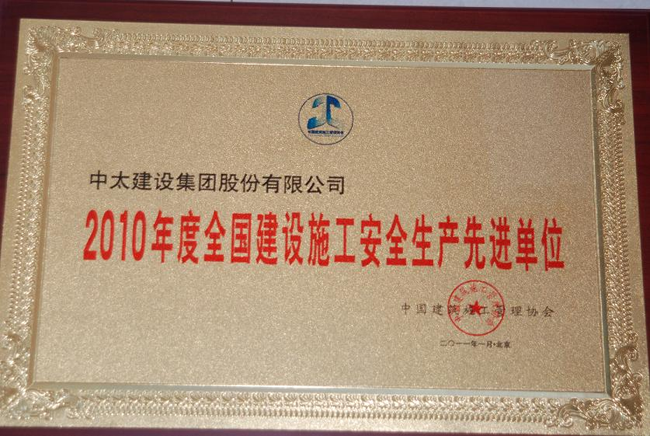 集團(tuán)公司榮獲“2010年度全國(guó)建設(shè)施工安全生產(chǎn)先進(jìn)單位”榮譽(yù)