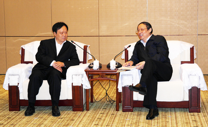安徽省省長王學軍(右)親切接見中太建設(shè)集團董事局主席李文健